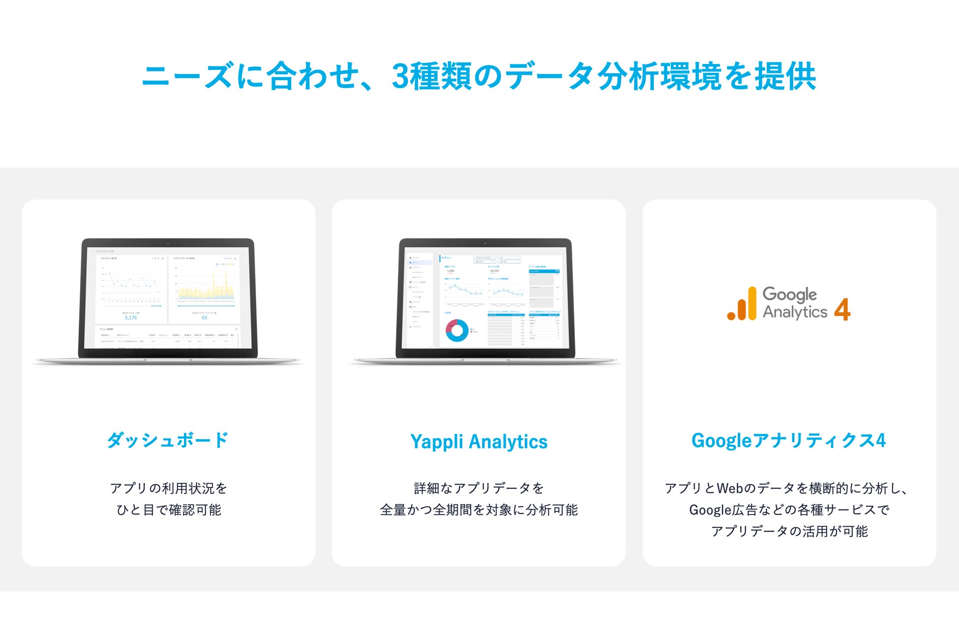 - アプリ運用の分析に特化した独自分析ツール「Yappli Analytics」