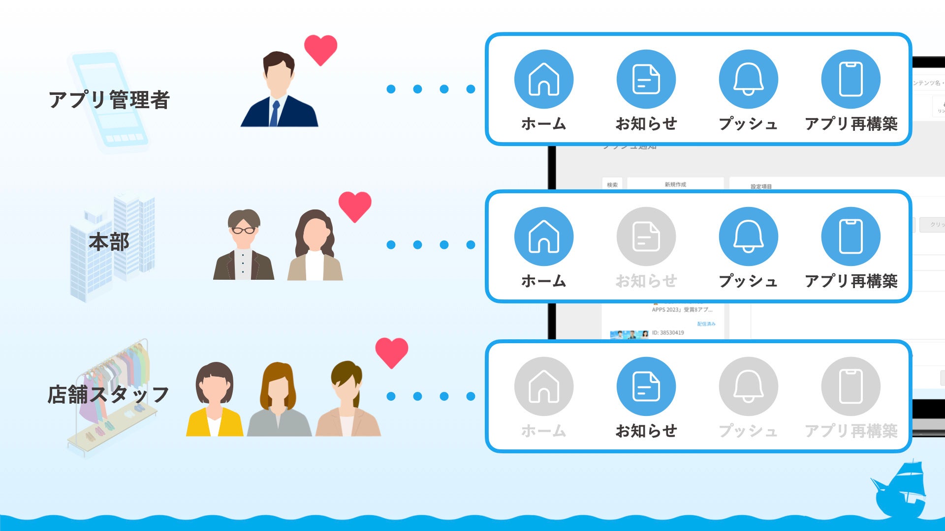 - 複数メンバーでもより安全にアプリ運用ができる「権限管理」