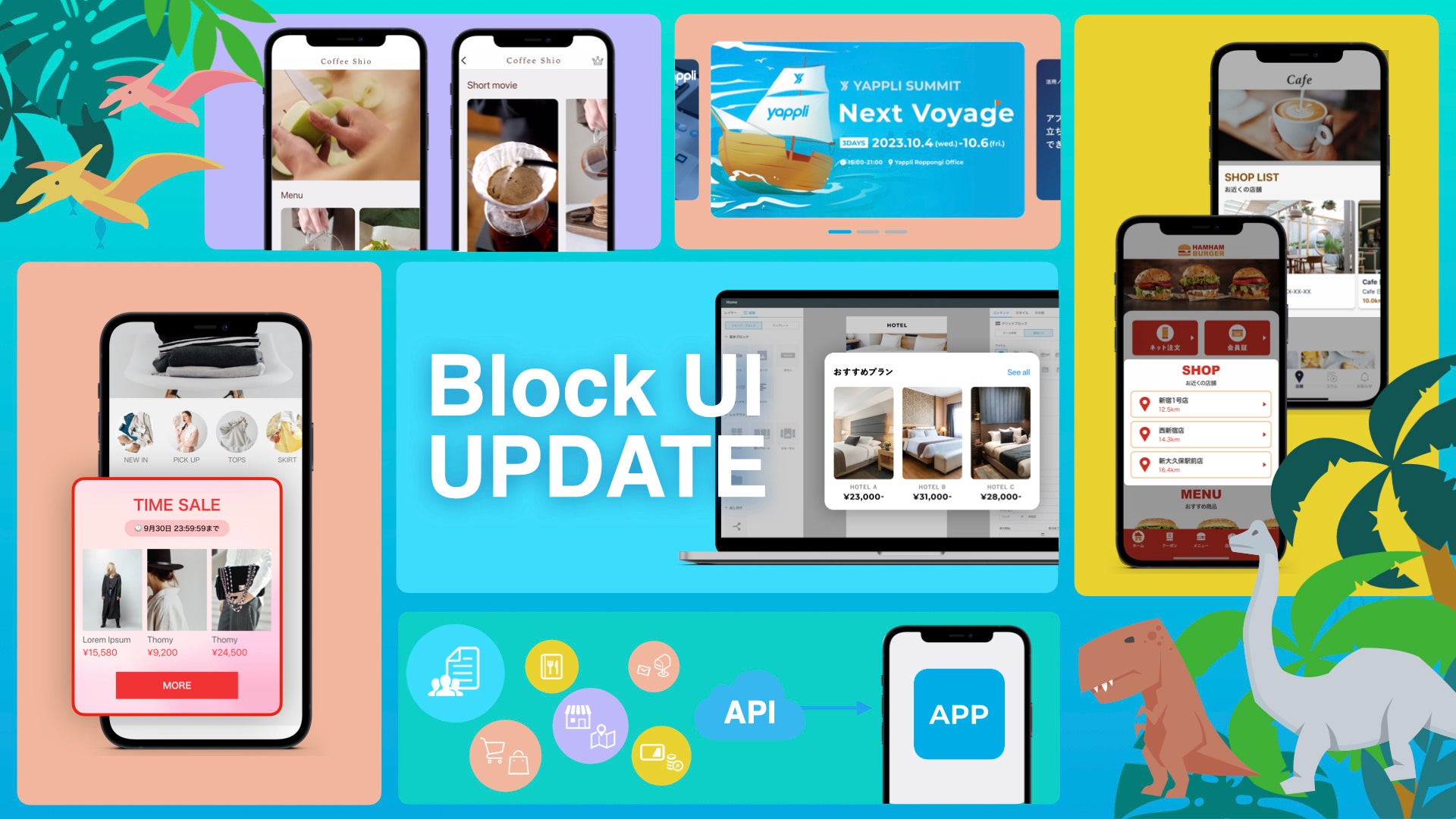 昨年発表した新しいアプリ基盤「Block UI(ブロックユーアイ)」は、「ブロック」と呼ばれるパーツを組み合わせることでフレキシブルかつ簡単にアプリを制作できる機能で、この1年間で約半数のYappli製アプリに活用いただいております。Block UI活用により、さらに柔軟なデザインが可能となり、従来より格段にモダンでオリジナリティあるアプリ表現が簡単にできるようになりました。