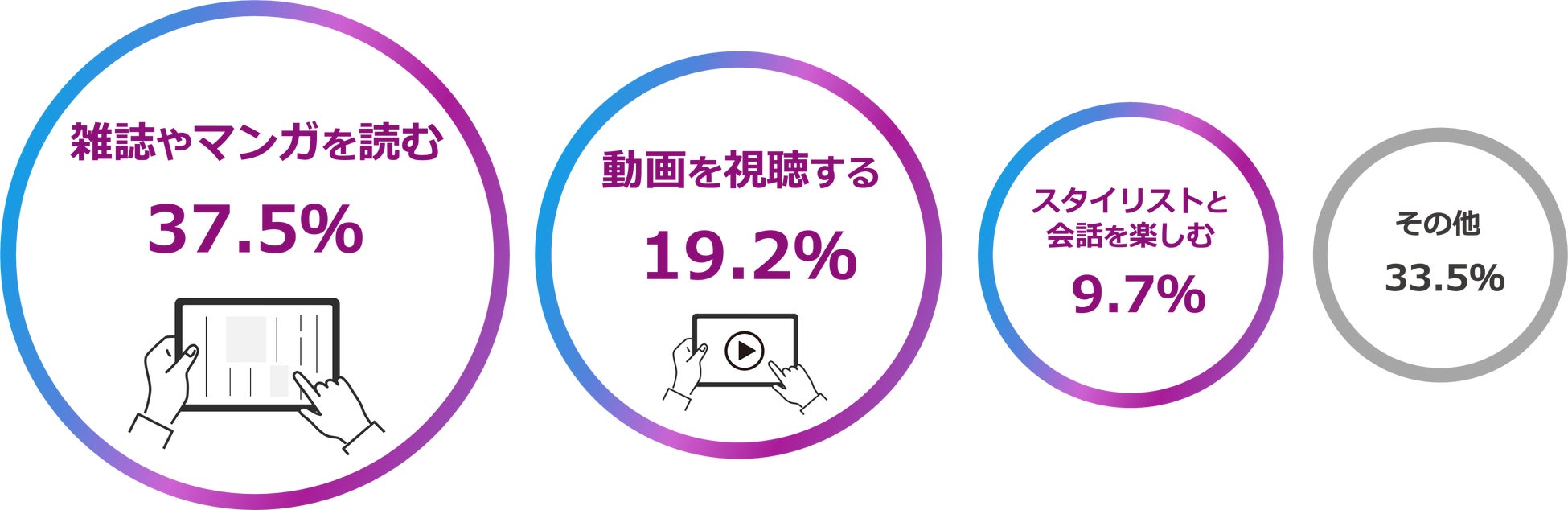 約60%の人が「雑誌やマンガを読む」や「動画の視聴」等で、美容サロン滞在中の時間を過ごしていると回答。