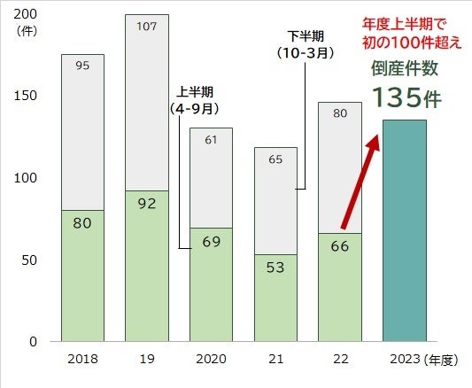 2023年度上半期は135件発生 年度上半期ベースで初の100件超え