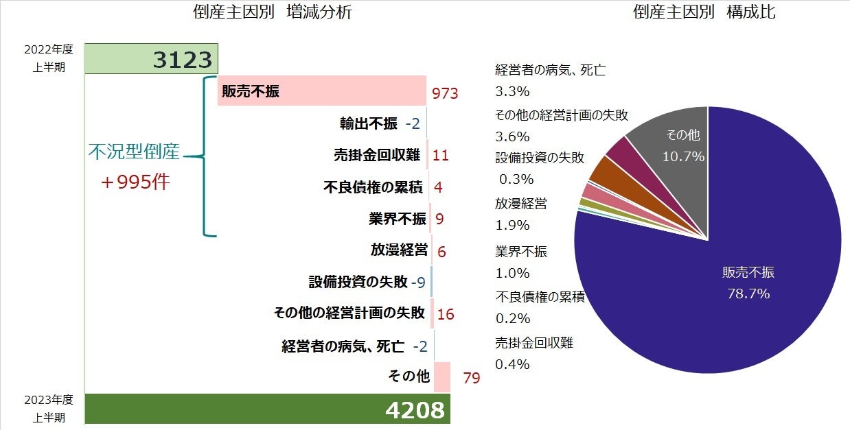 - 主因別にみると、『不況型倒産』が2000年度以降初の前年同期から4割増となった