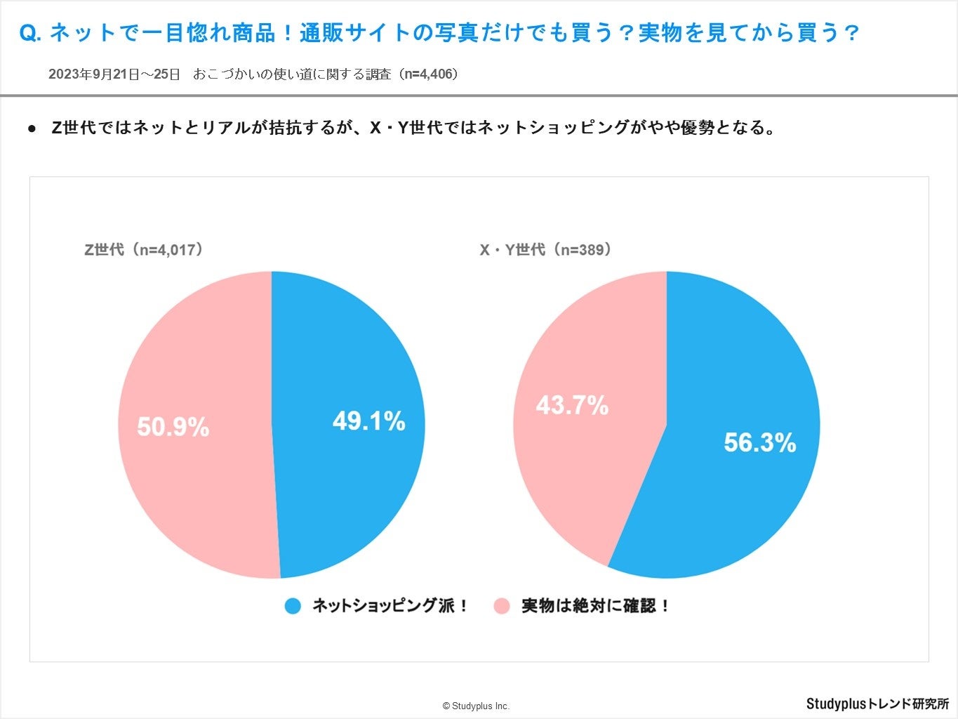 ・Z世代ではネットとリアルが拮抗するが、X・Y世代ではネットショッピングがやや優勢となる。