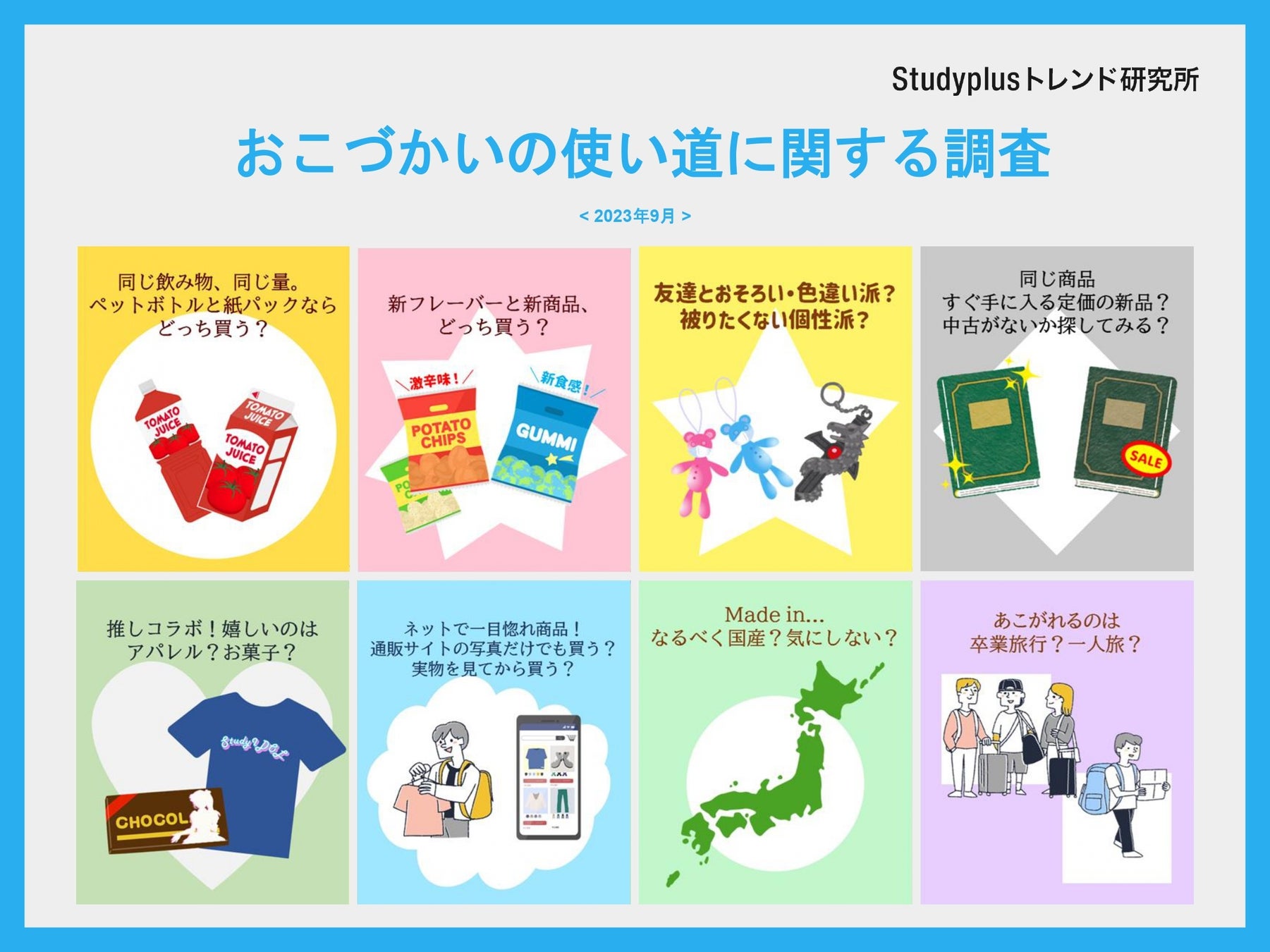 スタディプラス株式会社(本社:東京都千代田区、代表取締役:廣瀬高志、以下スタディプラス)のStudyplusトレンド研究所は、2023年9月21日(木)から9月25日(月)にかけて学習管理アプリ「Studyplus」上で全ユーザーを対象に、「おこづかいの使い道に関する調査」を実施、4,406名から回答を得ましたのでご報告いたします。