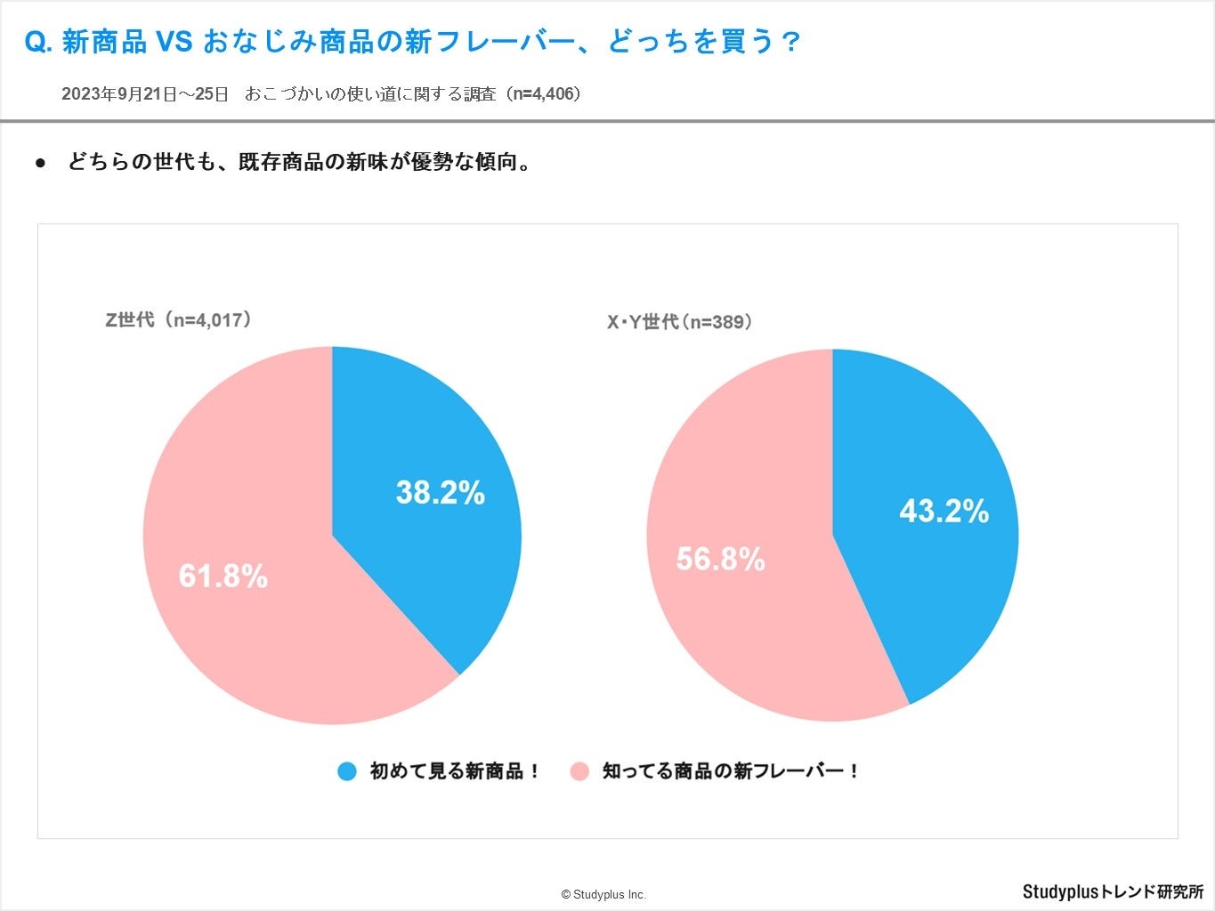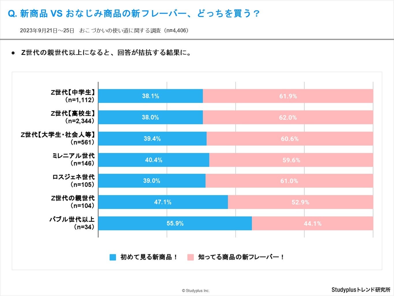 ・全体的には既存商品の新味が優勢な傾向だが、Z世代の親世代以上になると回答が拮抗する結果。