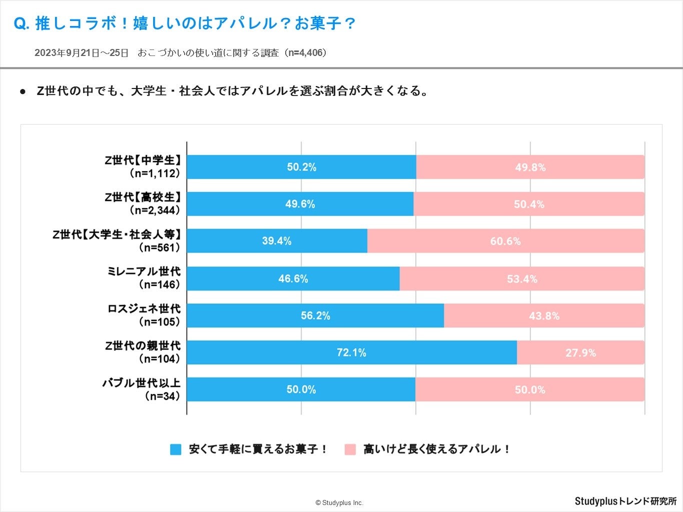 ・Z世代の中でも、大学生・社会人ではアパレルを選ぶ割合が大きくなる。