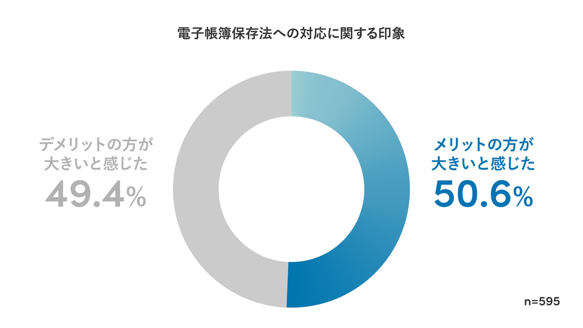 また、電子帳簿保存法に対応した企業では、業務効率化やペーパーレス化などのメリットを享受していることも明らかになりました。