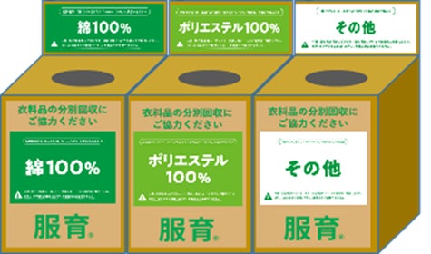 チクマノループⓇは、北九州市と、当社の関連会社である株式会社エヌ・シー・エス(以下「NCS」)との官民共同による「古着回収リサイクル事業」であり、この度、イオンリテール株式会社と連携し、衣類の素材別回収(ポリエステル100%/綿100%/その他混紡品)を、チクマが提唱する“服育Ⓡ”理念とともに消費者へ発信する事とした。