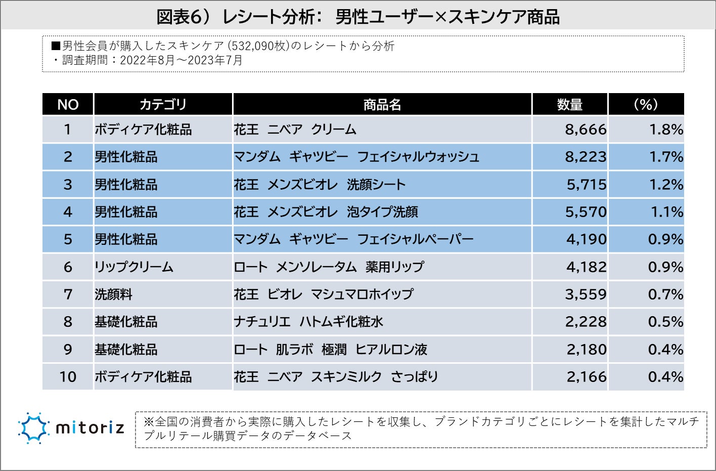 【レシートデータ】男性が購入しているスキンケア商品の上位10選