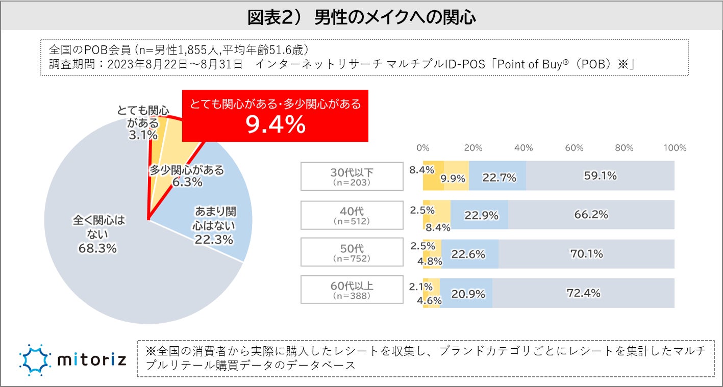 株式会社mitoriz(本社:東京都港区、代表取締役社長:木名瀬博)は、消費者購買行動データサービス「Point of Buy®(以下、POB)」の会員3,682人(男性1,855人・女性1,827人)に「男性の美容に関する調査」を実施致しました。