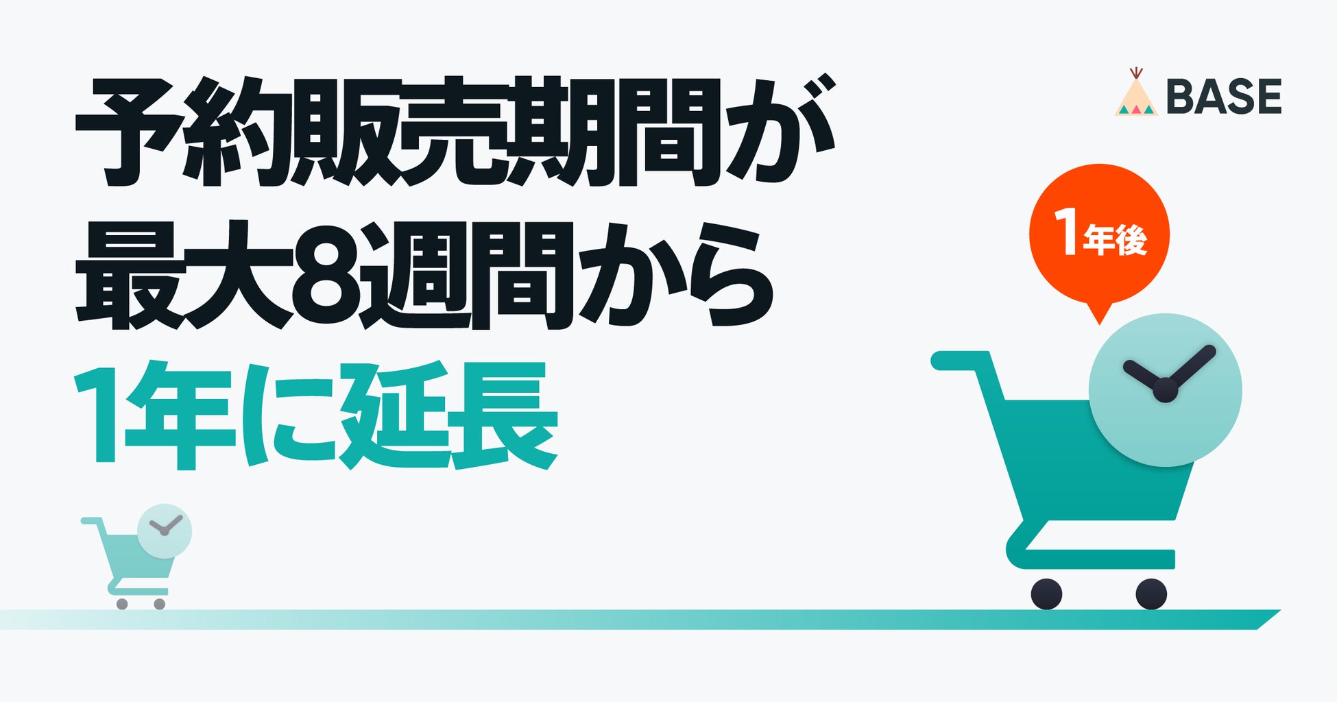 この度、BASE株式会社(所在地:東京都港区、代表取締役CEO:鶴岡 裕太)が運営するネットショップ作成サービス「BASE(ベイス)」は、受注生産型の商品や一定の入荷期間が必要な商品を先行販売し、予約注文を受けることができる拡張機能「予約販売 App」を、10月19日(木)にアップデートいたしました。本アップデートでは、売上向上のアシストを目的に、予約販売期間を最大8週間から1年に延長いたしました。