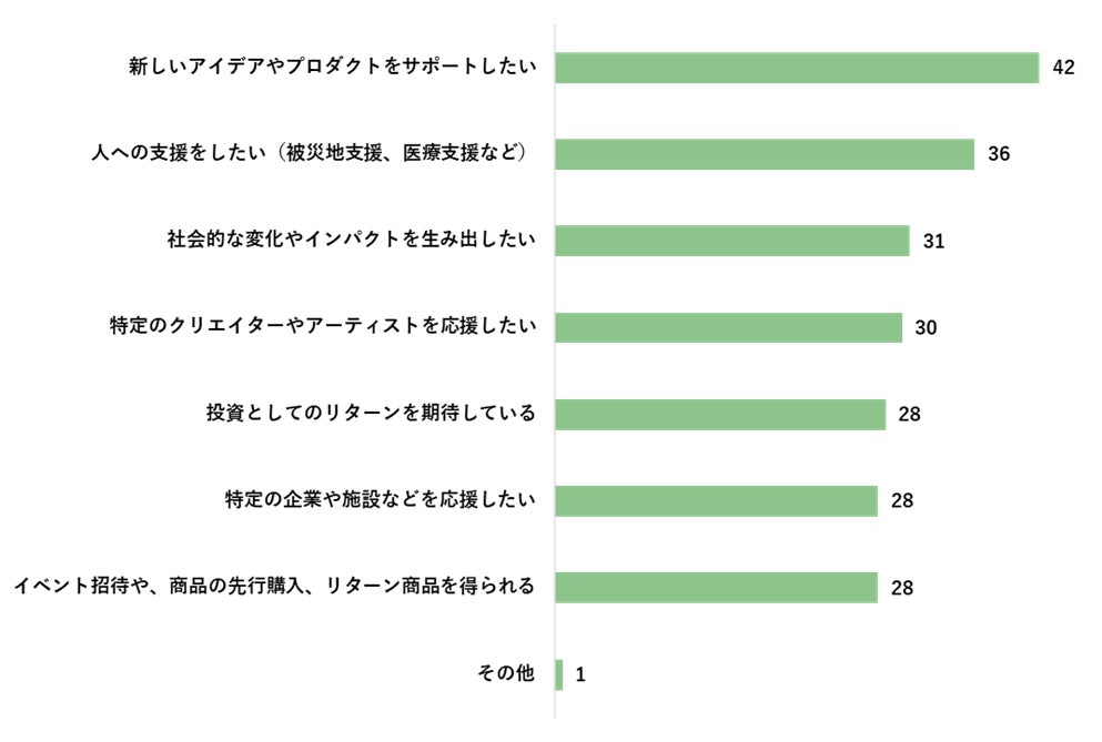 投資・寄付・購入をする理由1位は「新しいアイデアやプロダクトをサポートしたい」