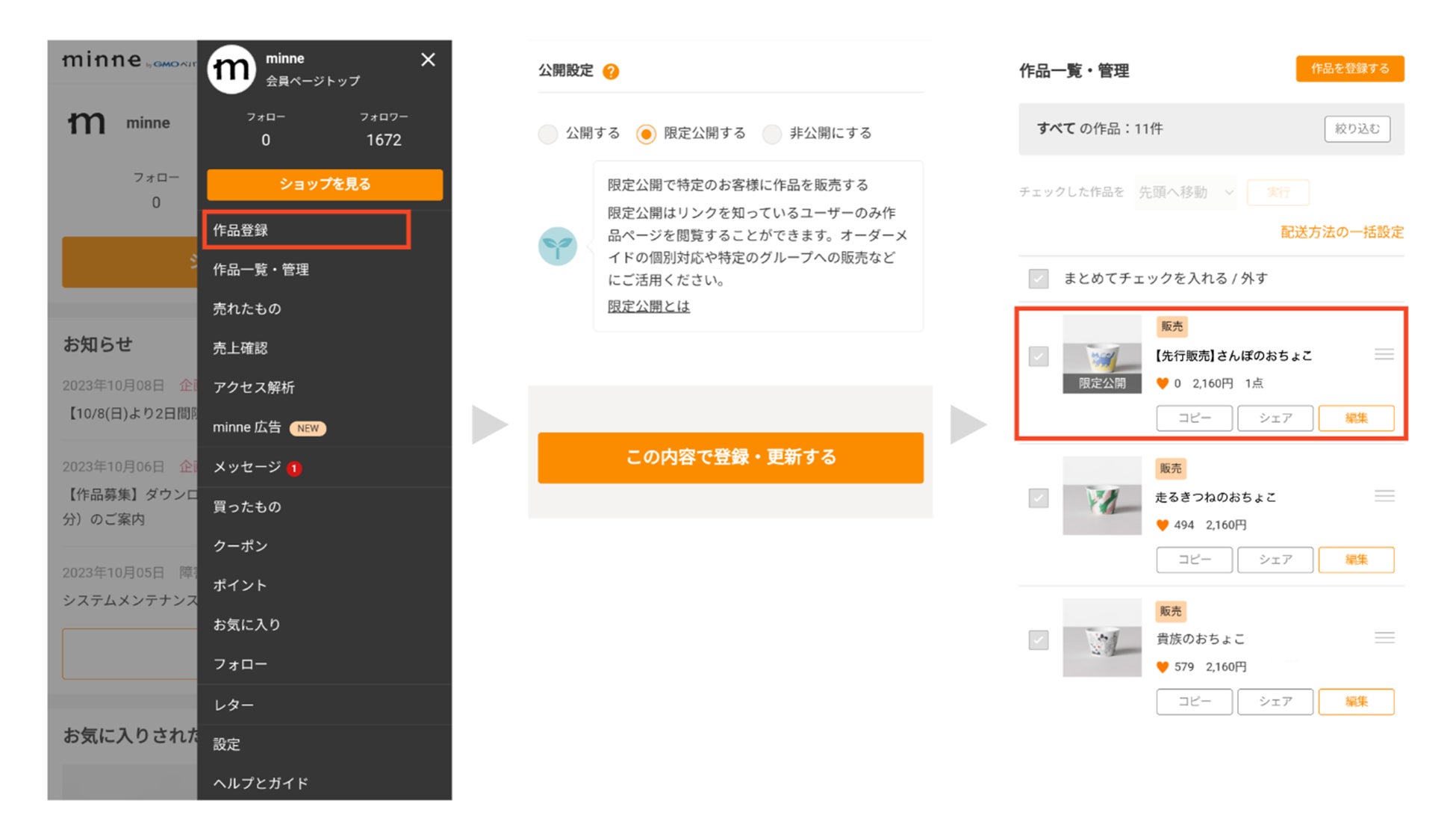 GMOインターネットグループのGMOペパボ株式会社(代表取締役社長:佐藤 健太郎 以下、GMOペパボ)が運営する国内最大(※1)のハンドメイドマーケット「minne(ミンネ) byGMOペパボ」(URL:https://minne.com/)は、2023年10月20日(金)より、作品の『限定公開』が可能になったことをお知らせします。