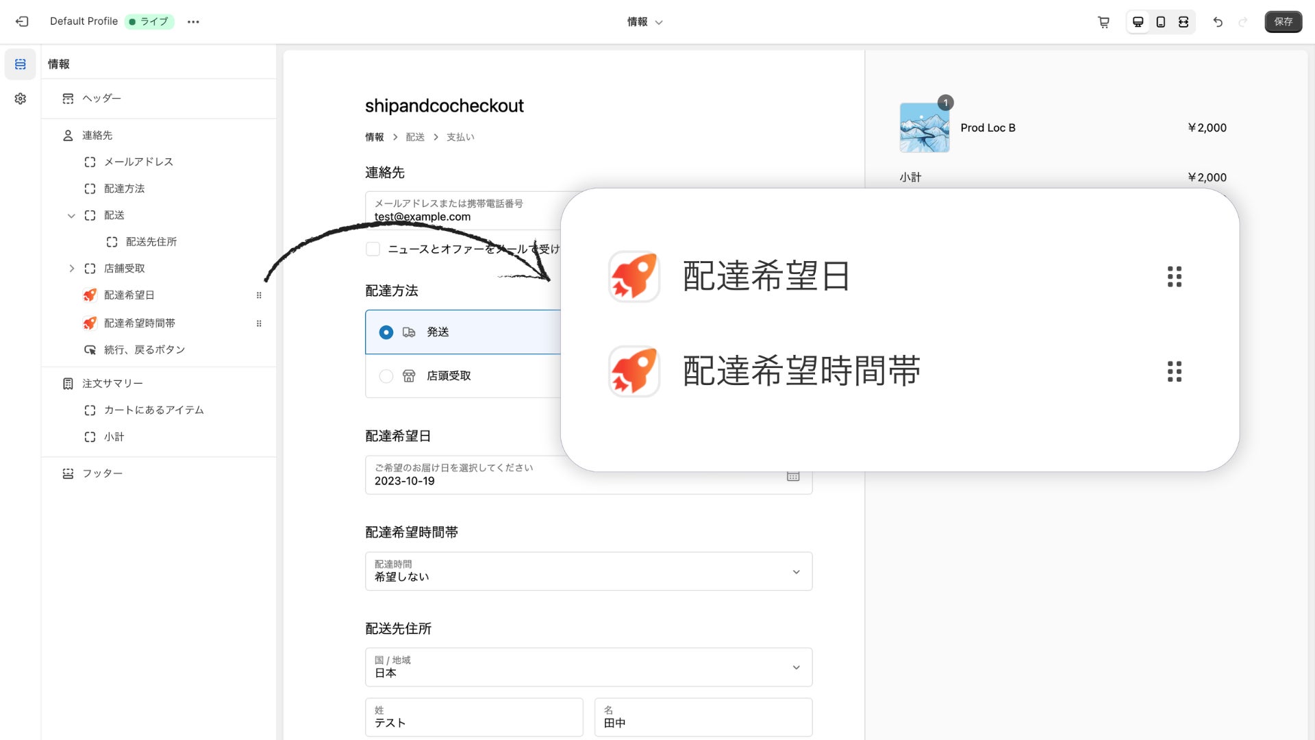 1. Shopifyチェックアウトでの「配達希望日」と「配達希望時間帯」指定メニュー