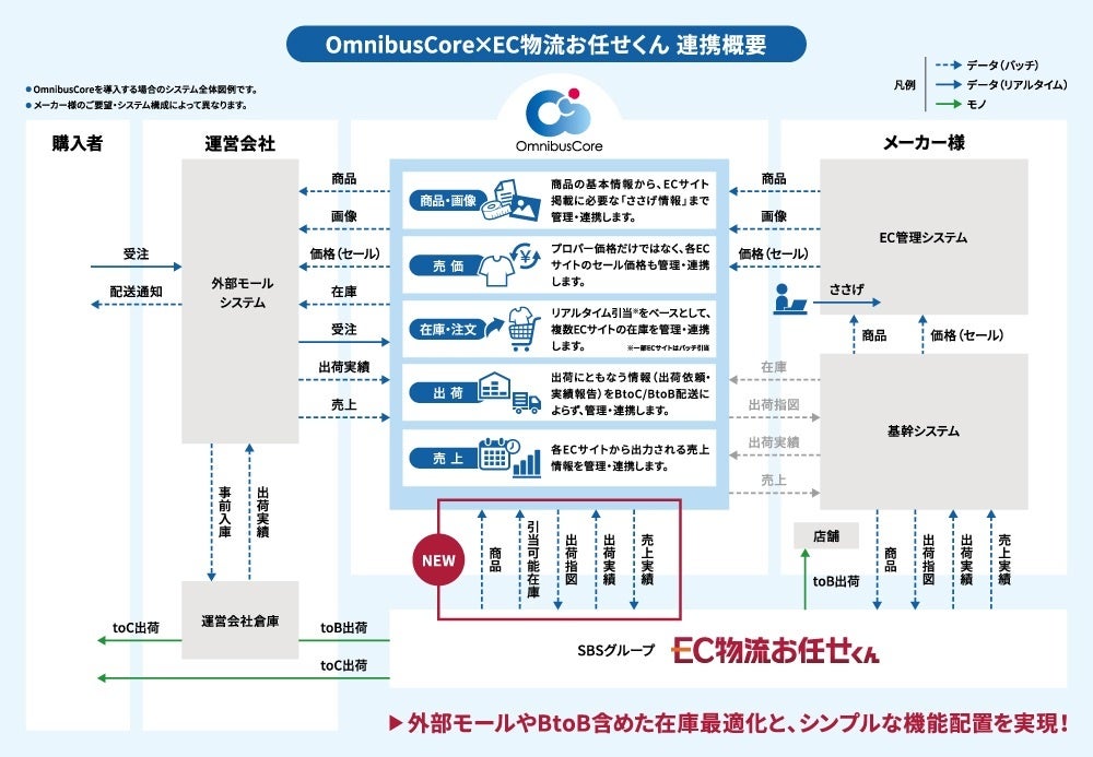 フューチャー株式会社(証券コード:4722)の主要事業会社であるフューチャーアーキテクト株式会社(本社:東京都品川区、代表取締役社長:神宮由紀、以下フューチャーアーキテクト)は、オムニチャネル戦略支援サービス「OmnibusCore」(※1)を2024年2月より、SBSホールディングス株式会社(本社:東京都新宿区、代表取締役:鎌田正彦、以下SBSグループ)が提供するECプラットフォームサービス「EC物流お任せくん」に連係します。