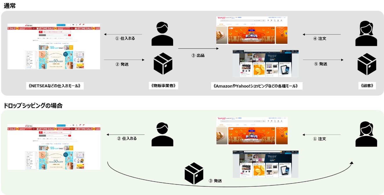 ドロップシッピングを行う物販事業者は、商品在庫を抱えることなく、注文商品をそのまま仕入れサイトやメーカーから顧客へ直送できます。在庫リスクを抱える必要がないため、低リスクでECビジネスを行うことができます。