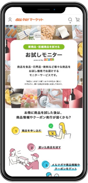 「au PAY マーケット」内、「お試しモニター by モラタメ」では、モラタメの「タメせる」の仕組みを活用したサンプリングサービスを展開します。モラタメの「タメせる」は、商品代の半額程度の送料(お試し費用)を、ユーザー自身が負担することで、商品をお届けするサービスです。メーカーは「費用を払ってもこの商品を試したい」と思う意欲的なユーザーへ、配送コストを抑えてサンプリングが可能です。