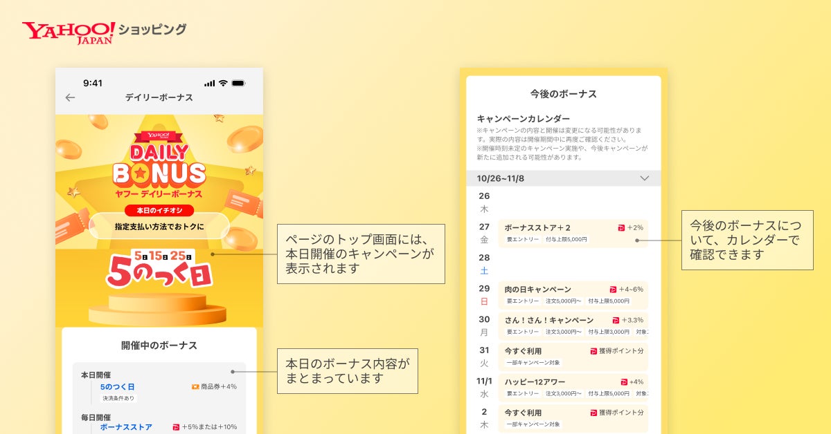 「ヤフーデイリーボーナス」:https://shopping.yahoo.co.jp/promotion/campaign/dailybonus/