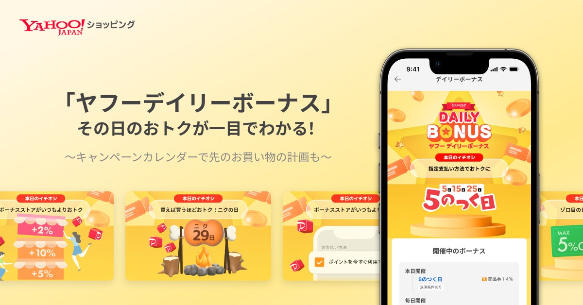 LINEヤフー株式会社(以下、LINEヤフー)が運営する「Yahoo!ショッピング」は、毎日のお買い物がよりわかりやすく、おトクに楽しめるよう、各キャンペーンを「ボーナス」という共通の冠名称で統一し、「ヤフーデイリーボーナス」としてリニューアルします。