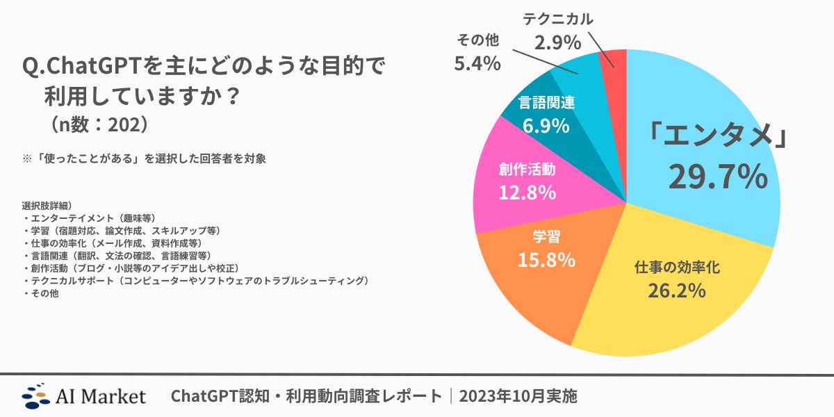 □ChatGPTの利用目的の1位は「エンターテイメント」で約29.7%