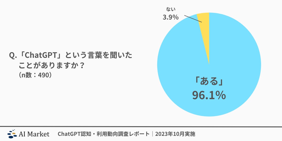 ・「ChatGPTという言葉を聞いたことがある」という回答は96.1%あるが、そのうち「利用したことがある」という回答は42.8%