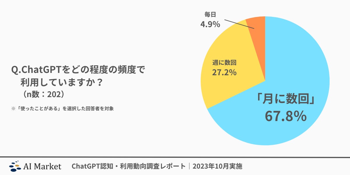 □ChatGPTの利用頻度で最も多いのは「月に数回」で約67%