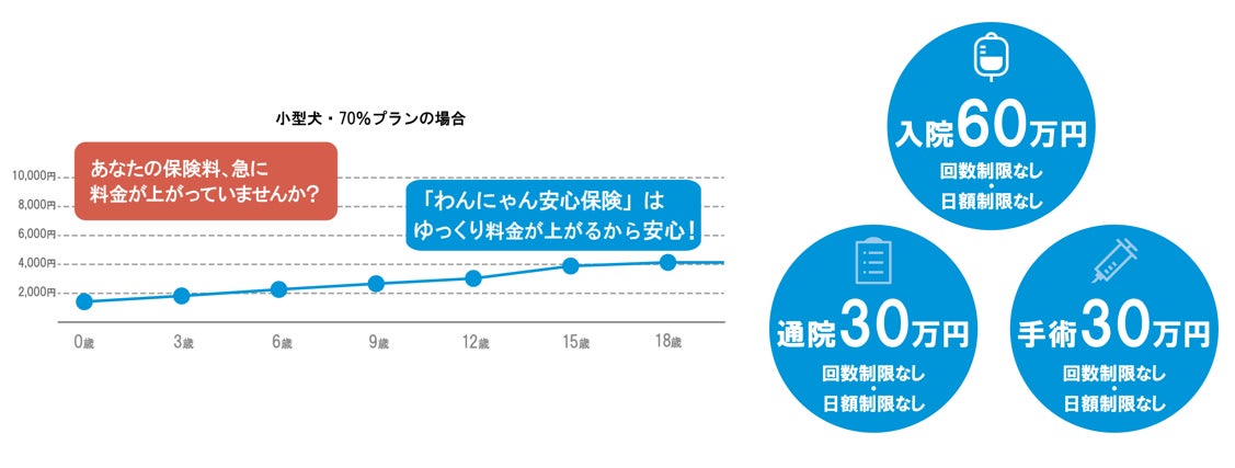 ペットの加齢にともなう保険料の上昇幅が緩やかな設計で、生涯保険料は業界最安クラスです。
