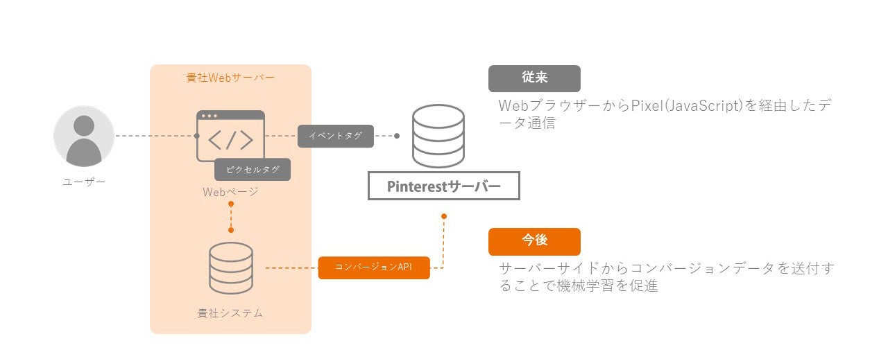 2022年9月に「Meta広告」(Facebook / Instagram)、2023年1月に「LINE広告」と「X広告」(旧Twitter広告)、2023年4月に「ヤフー広告」、2023年10月にTikTok広告(TikTok for Business) が提供する「Conversion API」との接続を行いました。そして、今回新たに「Pinterestアド」が提供する「Pinterest Conversion API」との接続を開始いたしました。