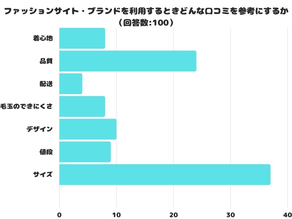 ファッションサイト・ブランドのどんな内容の口コミを参考にするかをアンケートにて調査したところ、1位は「サイズ」でした。