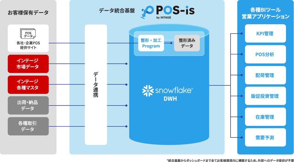 株式会社インテージ(所在地:東京都千代田区、代表取締役社長:檜垣 歩、以下「インテージ」)はSnowflake(所在地:東京都渋谷区、社長執行役員:東條 英俊)のデータ基盤を用いた、消費財メーカー営業部門向け流通データ統合・分析サービス 「POS-is™(ポスイズ)」の提供を開始しました。