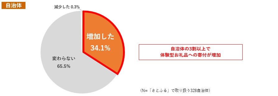・地域での体験を伴うお礼品への寄付について、自治体の34.1%が「増加した」と回答。