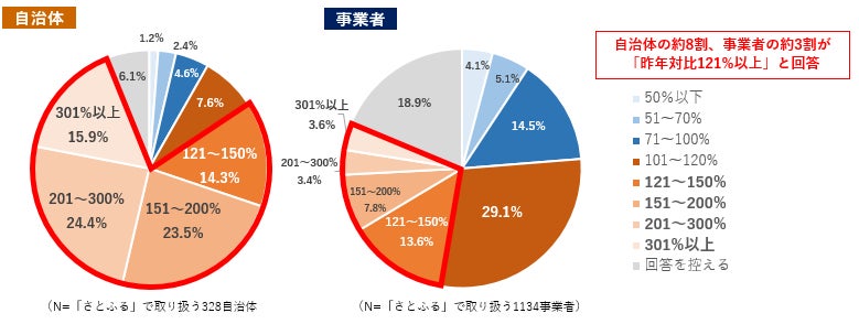 株式会社さとふる(本社:東京都中央区、代表取締役社長 兼 CEO:藤井 宏明)は、ふるさと納税ポータルサイト「さとふる」(https://www.satofull.jp/)でお礼品を提供する全国の328自治体と1134事業者を対象に、2023年のふるさと納税に関するアンケート調査を2023年10月4日~10月16日に実施しました。