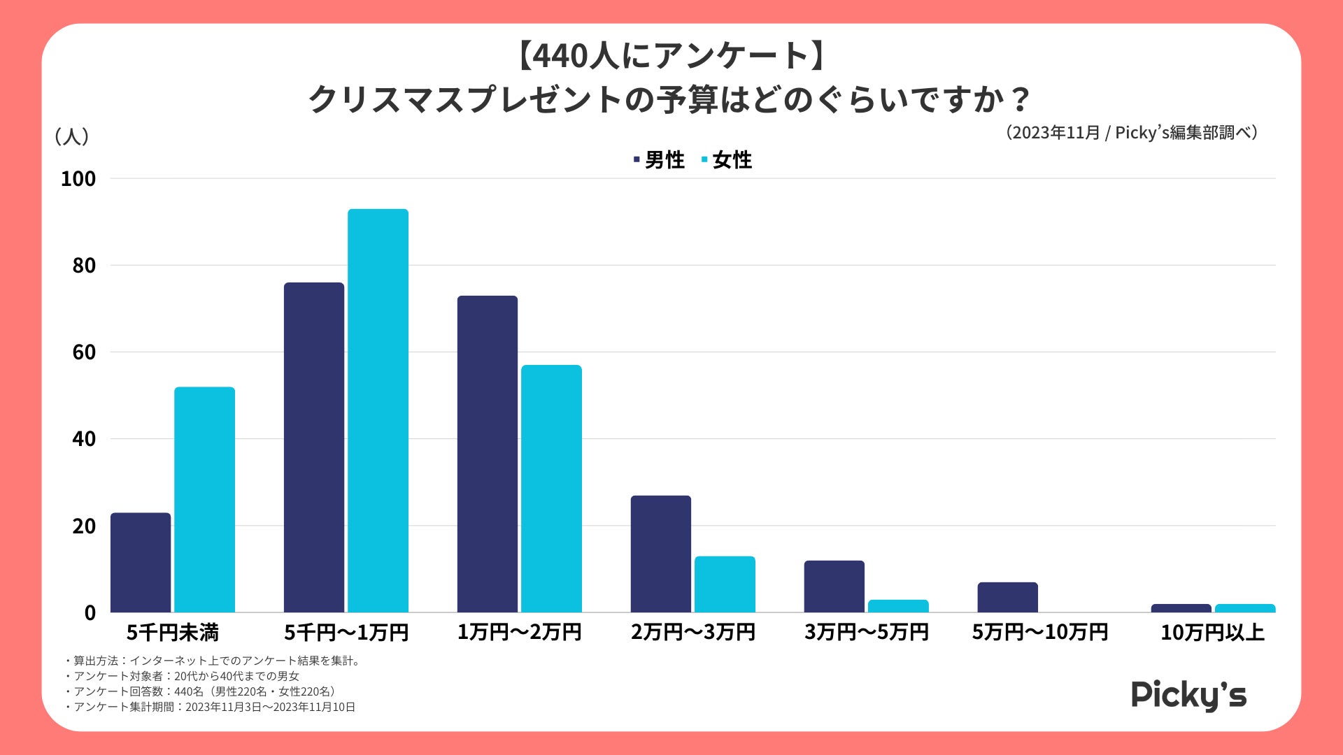 男性・女性ともに5千円~2万円の価格帯を予算とされている方が多くいらっしゃいました。