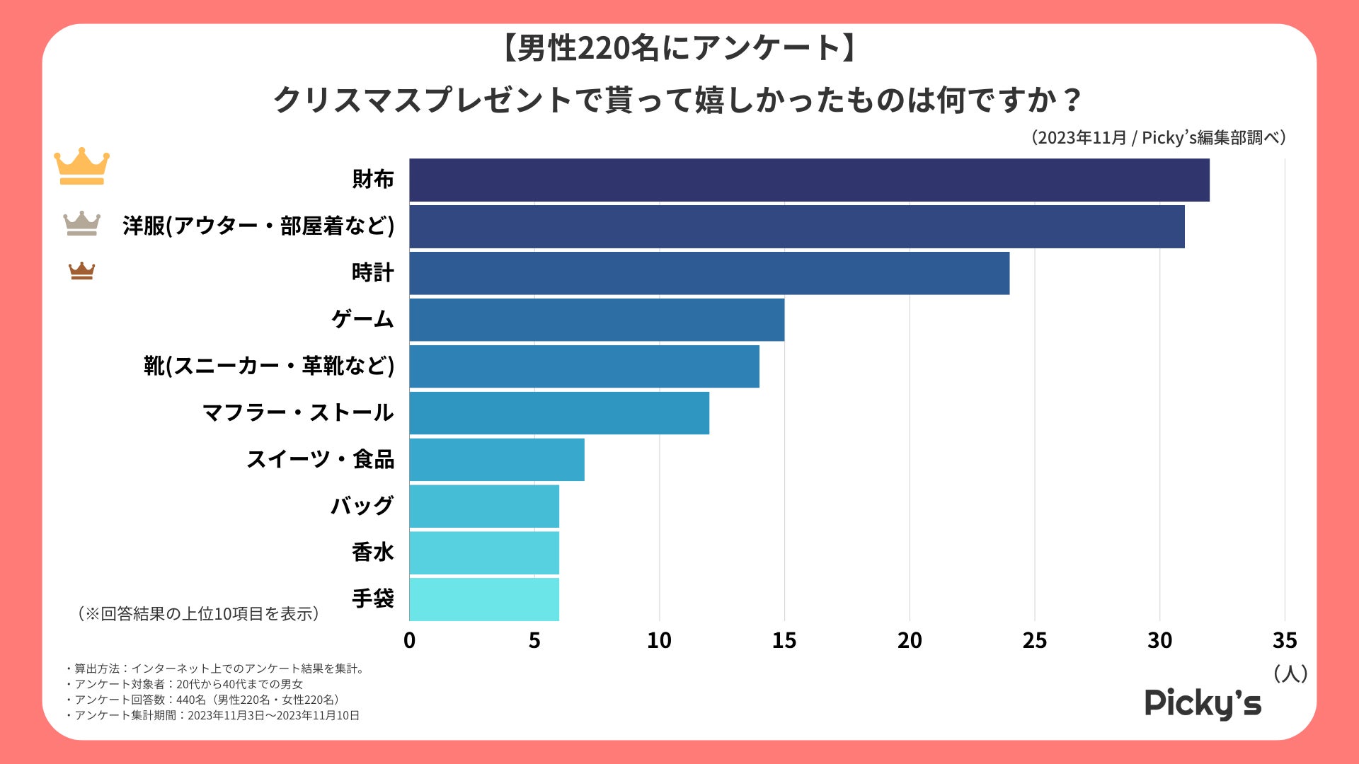 「Picky’s」は、インターネットショッピングにおいて、購入前に試せない・選ぶべきものがわからないという課題の解決を目標に、あらゆる商品のおすすめランキングや検証レビューを紹介するサイトです。このたびPicky’s(https://rentry.jp/note/)では、季節プレゼントに先駆けて、クリスマスプレゼントに関して、もらったら嬉しいクリスマスプレゼントやクリスマスプレゼントを渡すタイミング等について、インターネット上でアンケート調査を行いましたので発表いたします。