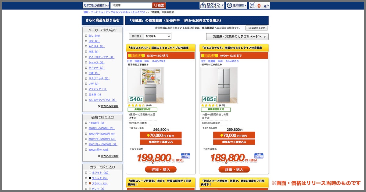 どちらも徹底的に良い商品だけを厳選して紹介しており、下取りや大型家電の設置、分割金利・手数料負担などの各種サービスも充実しています。