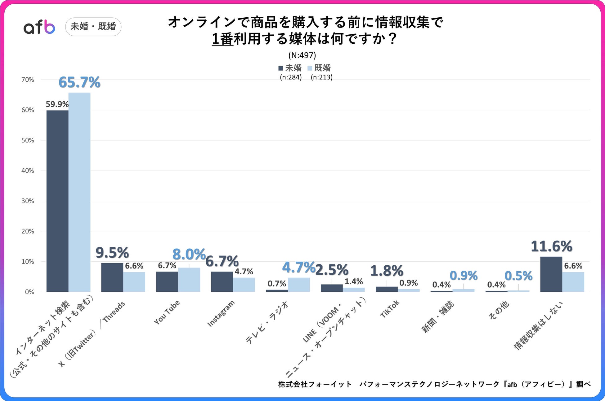 オンラインで商品を購入する際は実物を確認できないため、家族により良い商品を安心して使ってほしいといった思いから、既婚者に情報収集する方が多くなったのかもしれません。