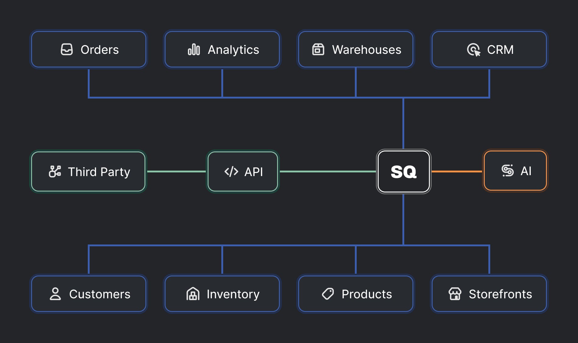 SQは主要なストアフロントだけではなく、APIを活用することで自社で構築したオンラインストアや、現在利用しているPOSにも接続可能です。