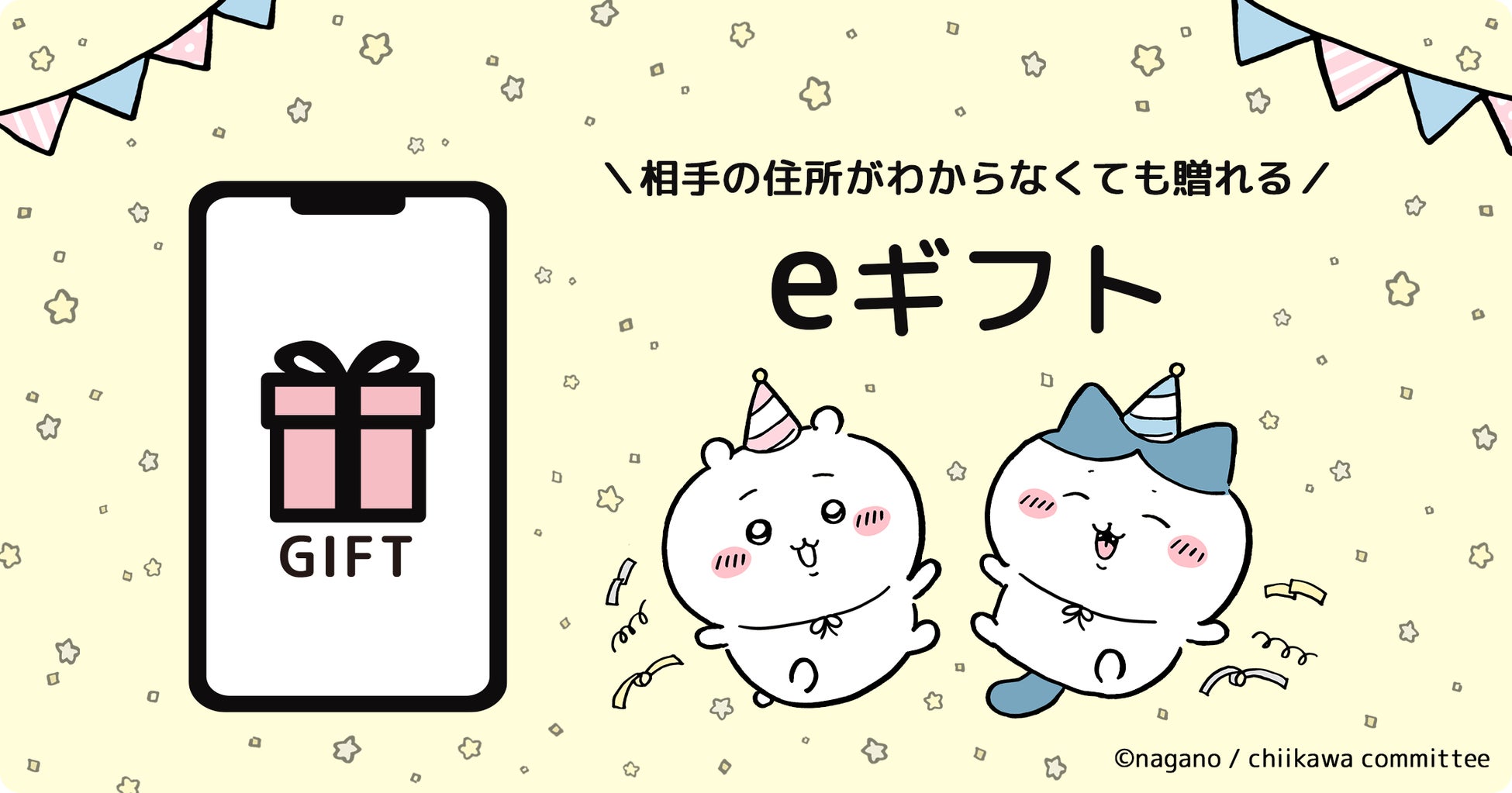 「ちいかわ」や「ハチワレ」、「うさぎ」などの公式グッズを「ちいかわマーケット」から、加えて「ナガノのくま」「もぐらコロッケ」などの公式グッズを「ナガノマーケット」から、友達や家族、恋人、住所を知らない相手にもeギフトとして贈ることが可能になります。
