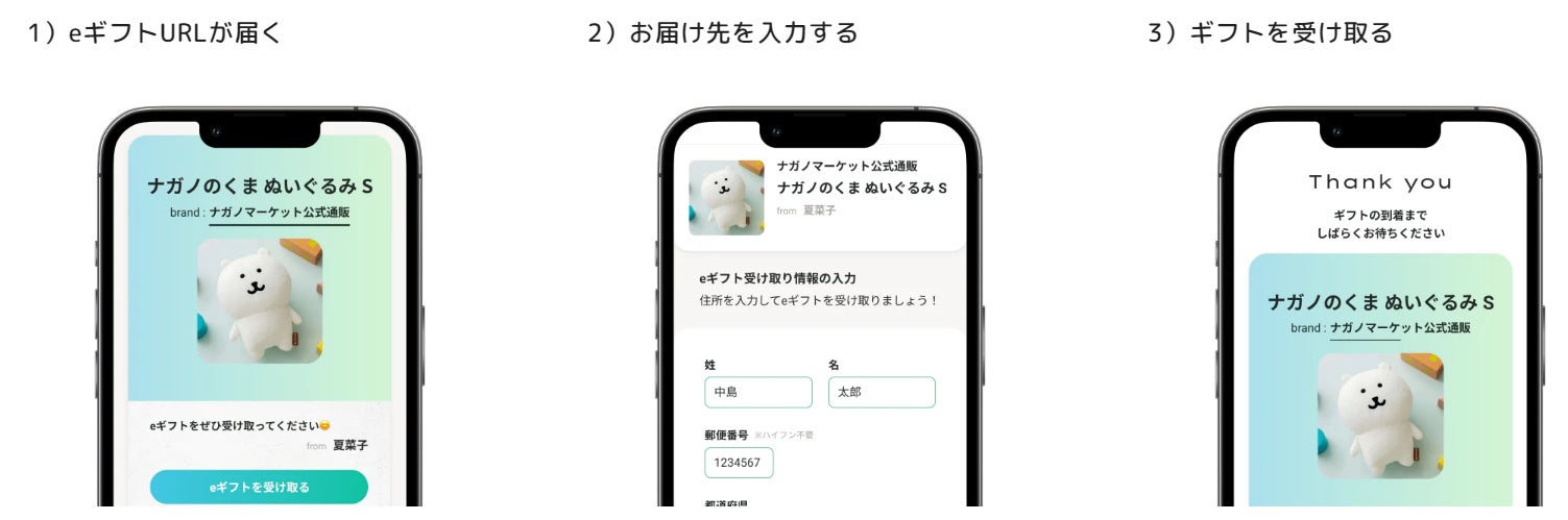 ギフトを受け取る方はeギフトURLから住所を登録いただくと商品が届きます
