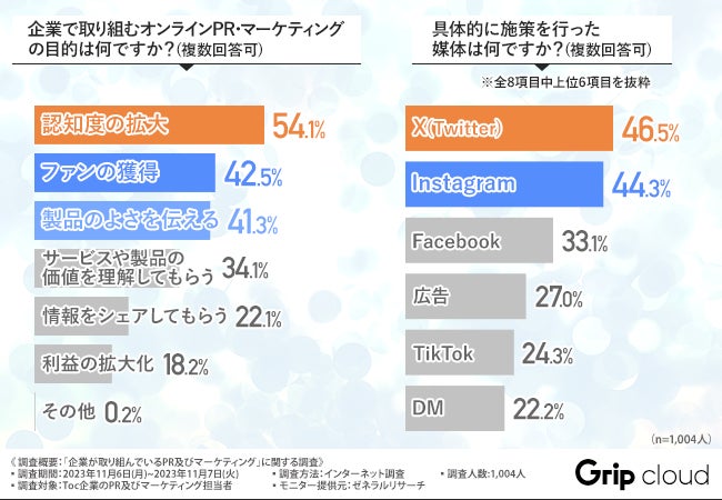 Grip Company Co.,Ltd(所在地:韓国、代表者名:キム・ハンナ)は、Toc企業PR担当者を対象に「企業が取り組んでいるPR」に関する調査を実施しました。