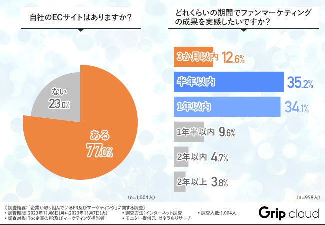 およそ半数の方が半年以内、全体の約8割の方が1年以内にはファンマーケティングの成果を出したいと回答しています。