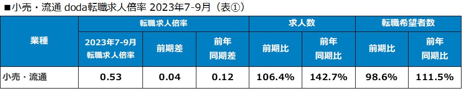パーソルキャリア株式会社が運営する、転職サービス「doda(デューダ)」は、2023年7-9月期の小売・流通業界の転職求人倍率や転職市場動向をまとめた「業界版doda転職市場動向レポート」を発表いたします。なお、本業界の最新動向は、doda編集長 加々美祐介が解説します。