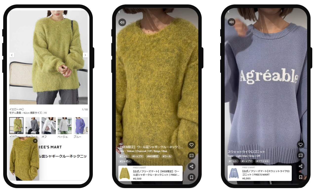 FREE'S MARTでは、商品紹介のための短尺動画をSNS用に毎月30本程度作成していましたが、サイト内では商品詳細ページでの掲載のみに留まっており、積極的に活用することができていませんでした。ユーザーがECサイトの中でこれらの短尺動画を使って商品を理解するためのソリューションとして、Shopliveの採用を決定しました。