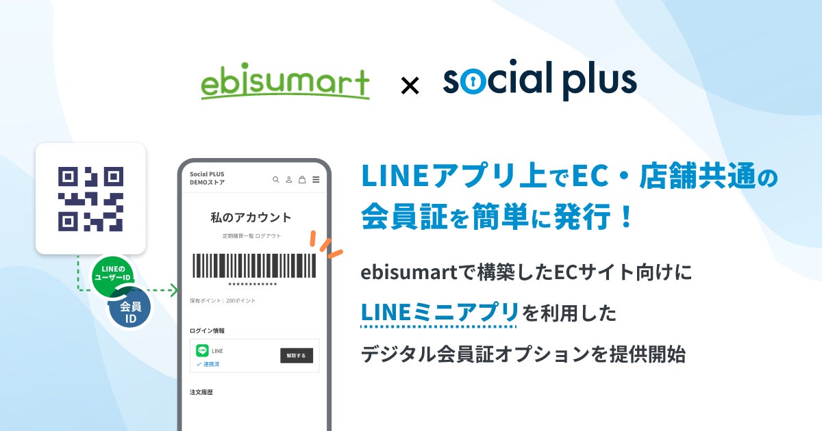 株式会社ソーシャルPLUS(所在地:東京都港区、代表取締役:岡田 風早)は、株式会社インターファクトリー(本社:東京都千代田区、代表取締役社長 兼 CEO:蕪木 登)が提供するクラウドコマースプラットフォーム「ebisumart(エビスマート)」において、LINEアプリ上でデジタル会員証を発行できる「デジタル会員証オプション」を提供開始しました。