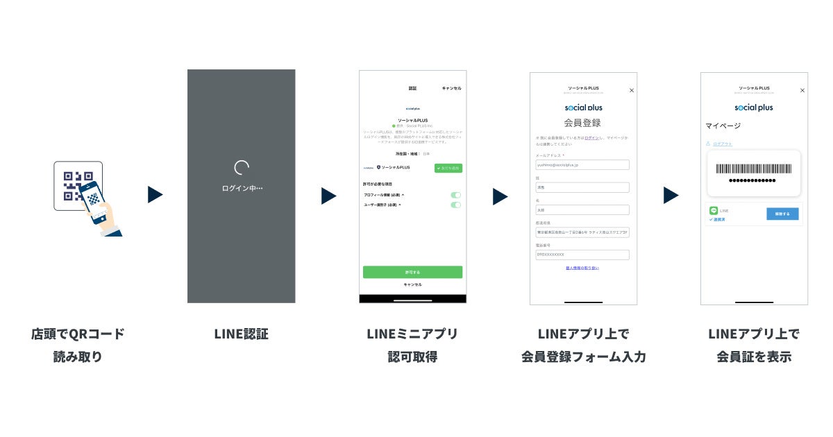 - 店頭のQRコードからLINEアプリ上で簡単に会員証を発行