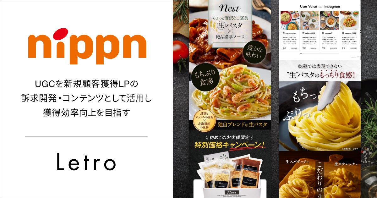企業のマーケティングDXを支援するアライドアーキテクツ株式会社(東京都渋谷区、代表取締役社長 CEO:中村壮秀、プロダクトカンパニープレジデント:村岡弥真人、証券コード:6081)が展開するCVR最適化プラットフォーム「Letro(レトロ)」は、株式会社 ニップン(東京都千代田区、代表取締役社長:前鶴俊哉)が展開するEC限定ブランド「nest(以下ネスト)」に対し、新規顧客向けLP制作・運用の支援を行いました。
