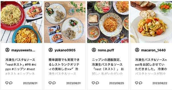 従前はUGCの数が少なかったため、最初はLetroが提供する「UGC生成パッケージ(※1)」を利用して、商品と親和性の高い生活者からUGCが生成される機会を設計。ビジュアルを通して実際に商品が食卓に並ぶ様子を伝えるだけでなく、「パスタの味わい」や「使いやすさ」、「どんなシーンで食べたいか」についての感想が発信される設計をすることでお客様の体験価値を把握することを狙いました。