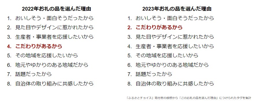 お礼の品にも事業者・生産者の「こだわりがある」ことが重視される傾向
