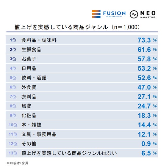 最後に、値上げを実感している商品ジャンルをお聞きしました。