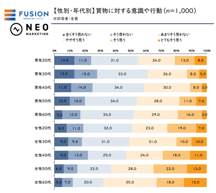 各項目について、自身の買物に対する意識や行動に近いものをお聞きしました。